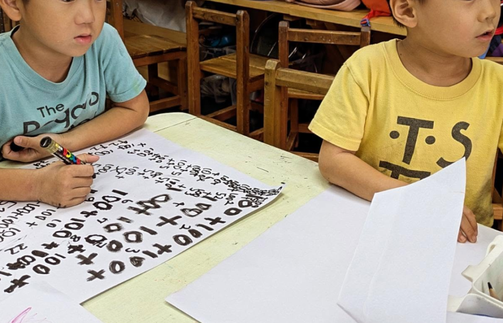 Traditionally “academic” areas like math or phonics find a way to be expressed in the atelier too. Students break down the strict lines of learning which we create when making a specific “phonics” or “math” time that they must follow.